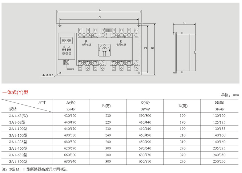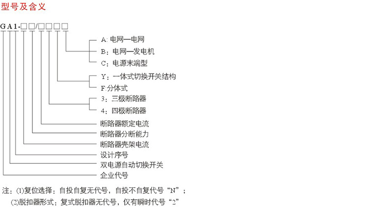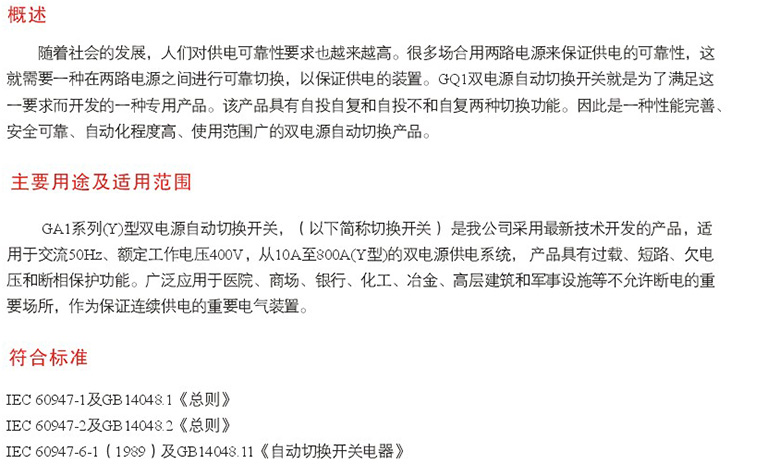 產品名稱GA1-100雙電源自動轉換開關