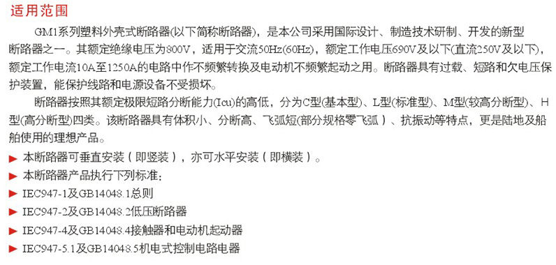 產(chǎn)品名稱GM1-250塑料外殼式斷路器